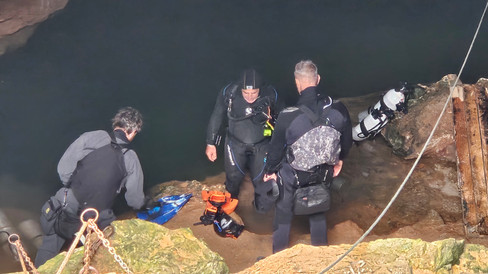 januari is er nog een duiker omgekomen bij een toeristische duikexpeditie. Haar partner wordt grove nalatigheid verweten. Dat weerhoudt duikers niet, telkens als we boodschappen doen komen we langs de grot en zien daar duikers.